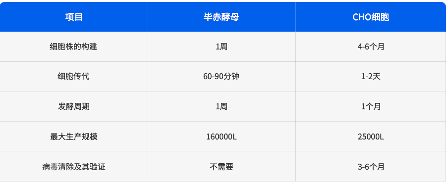 当前,抗体类蛋白药物大都是顺利获得CHO细胞表达系统发酵生产,毕赤酵母与CHO细胞相比,仍然有诸多优势,第一时间毕赤酵母与CHO细胞都是真核细胞,拥有高等真核表达系统的诸多优点,比如蛋白质加工、蛋白质折叠以及翻译后修饰;其次,毕赤酵母构建细胞株更快,不需要耗时的病毒清除验证步骤,极大节约了研发周期;最后,毕赤酵母的发酵培养比CHO细胞会有更快、更容易、更便宜、更高产量的特点,可高密度大规模培养,大幅度降低抗体的生产成本。